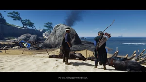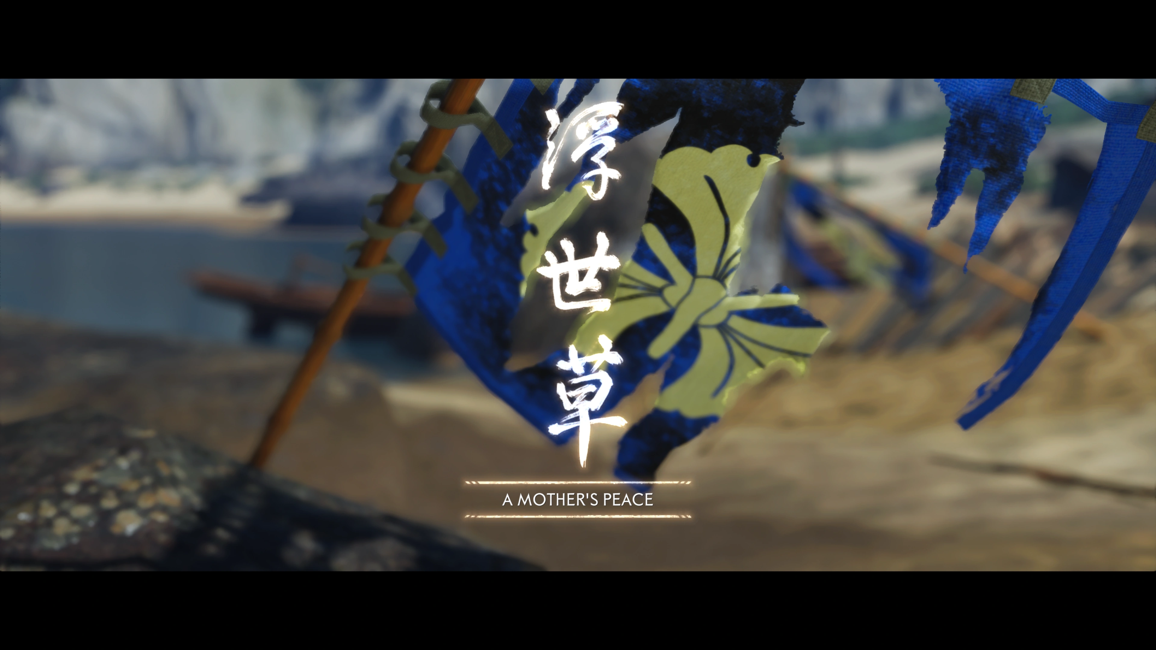 Jin Sakai searches for Lady Masako near Komoda Beach, finds her fighting a group of Mongols and helps her dispatch the remaining enemies. Masako explains that she is searching for the bodies of her two sons so she can give them a proper burial. Jin offers to help and they begin to search the beach. They encounter several banners of Clan Adachi along the way, while Jin comes across his horse's body and pays his respects.