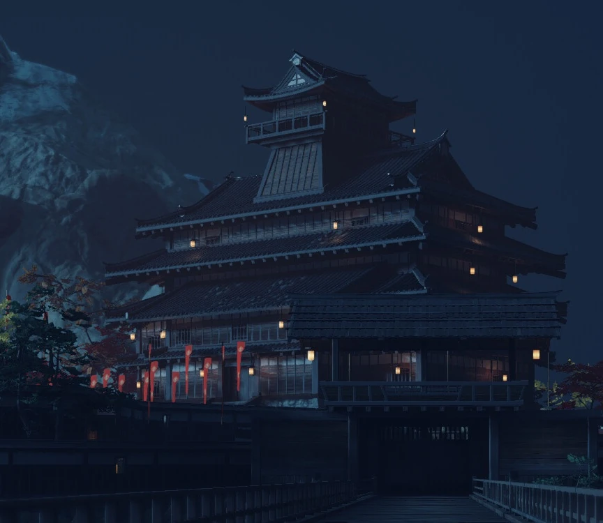 The grounds of Castle Shimura serve as the battleground for the Siege of Castle Shimura, where Lord Shimura, Jin Sakai, Yuna, Sensei Ishikawa, Lady Masako, Norio, the Warrior Monks of Kushi Temple, retainers of Clan Yarikawa, and samurai reinforcements from Clan Oga battle the Mongol forces for control over Castle Shimura, leading to strategic control over Tsushima Island.