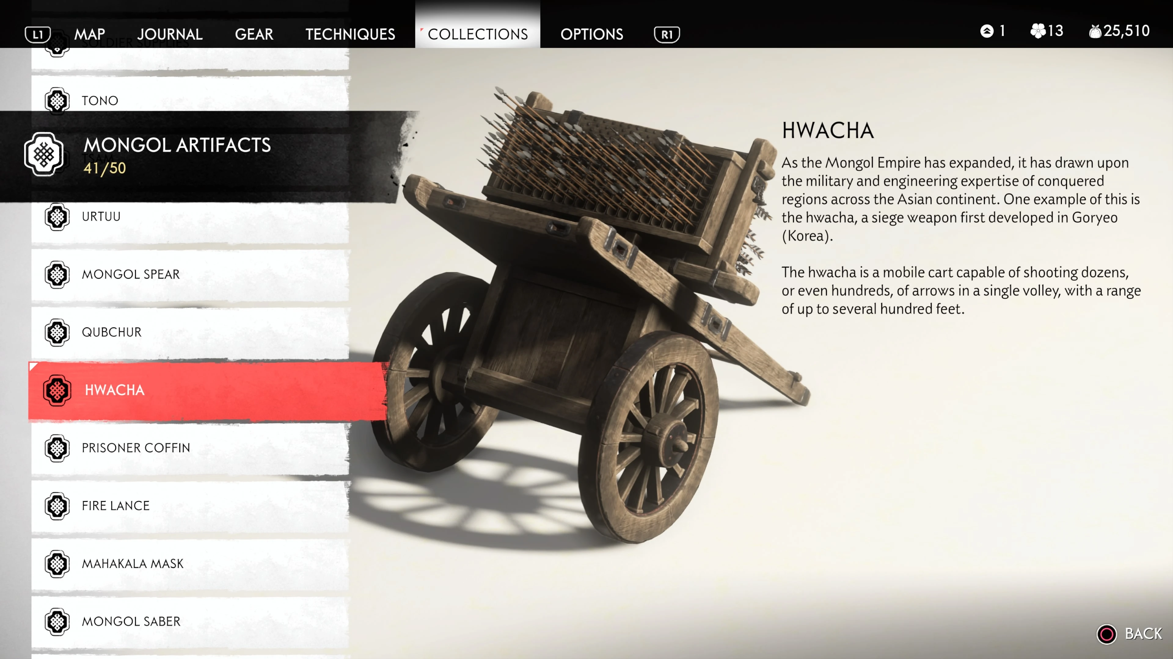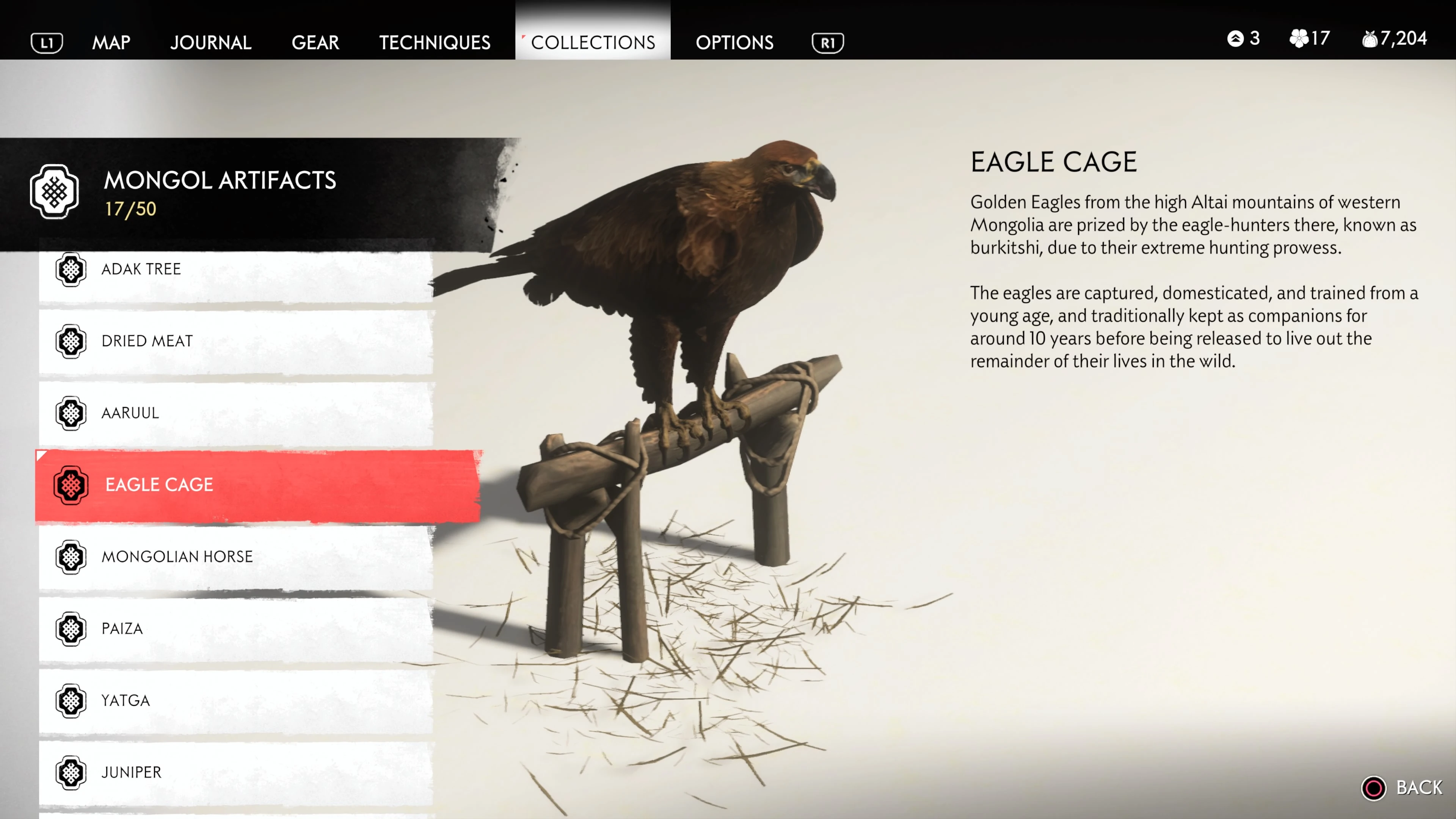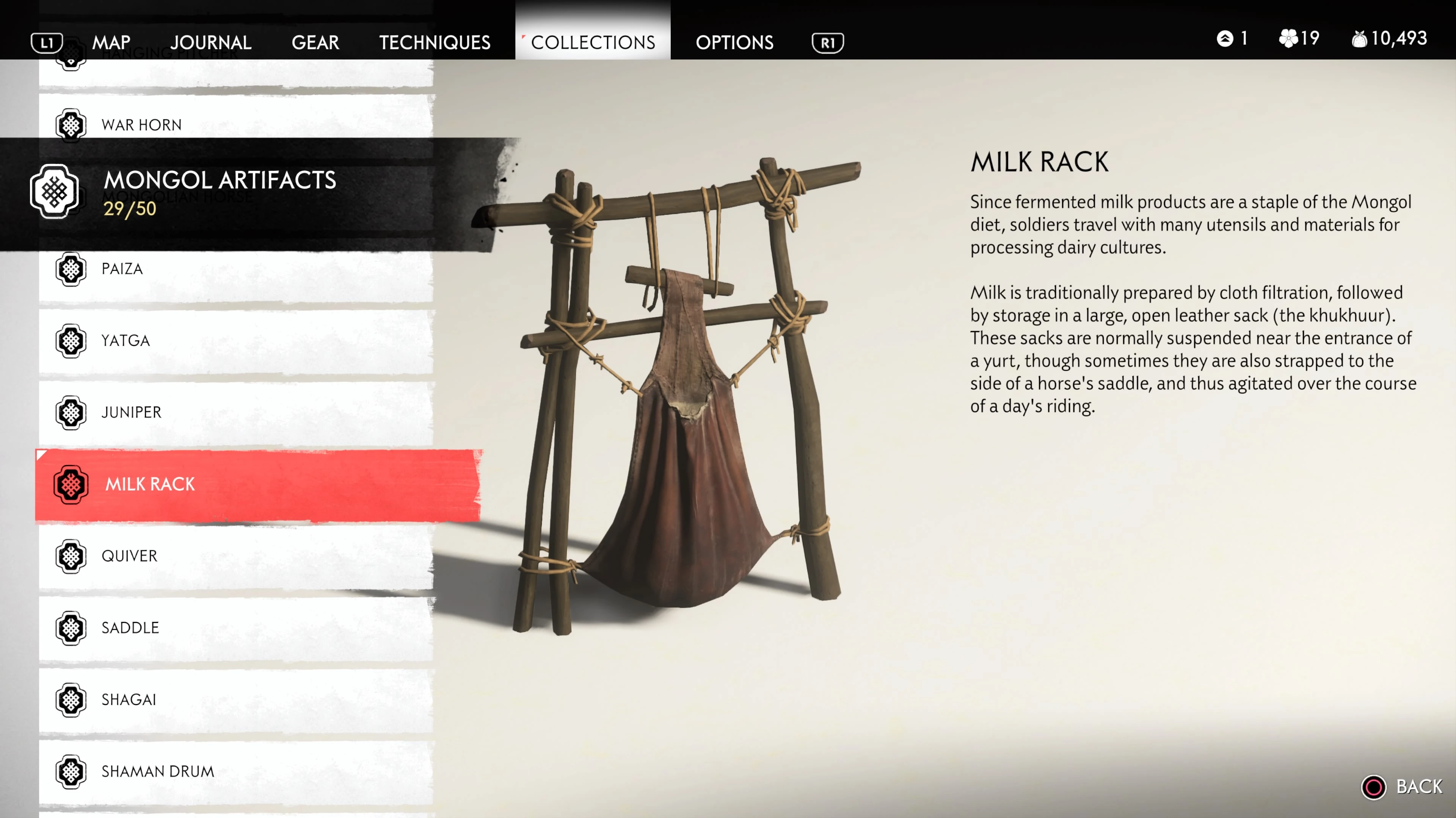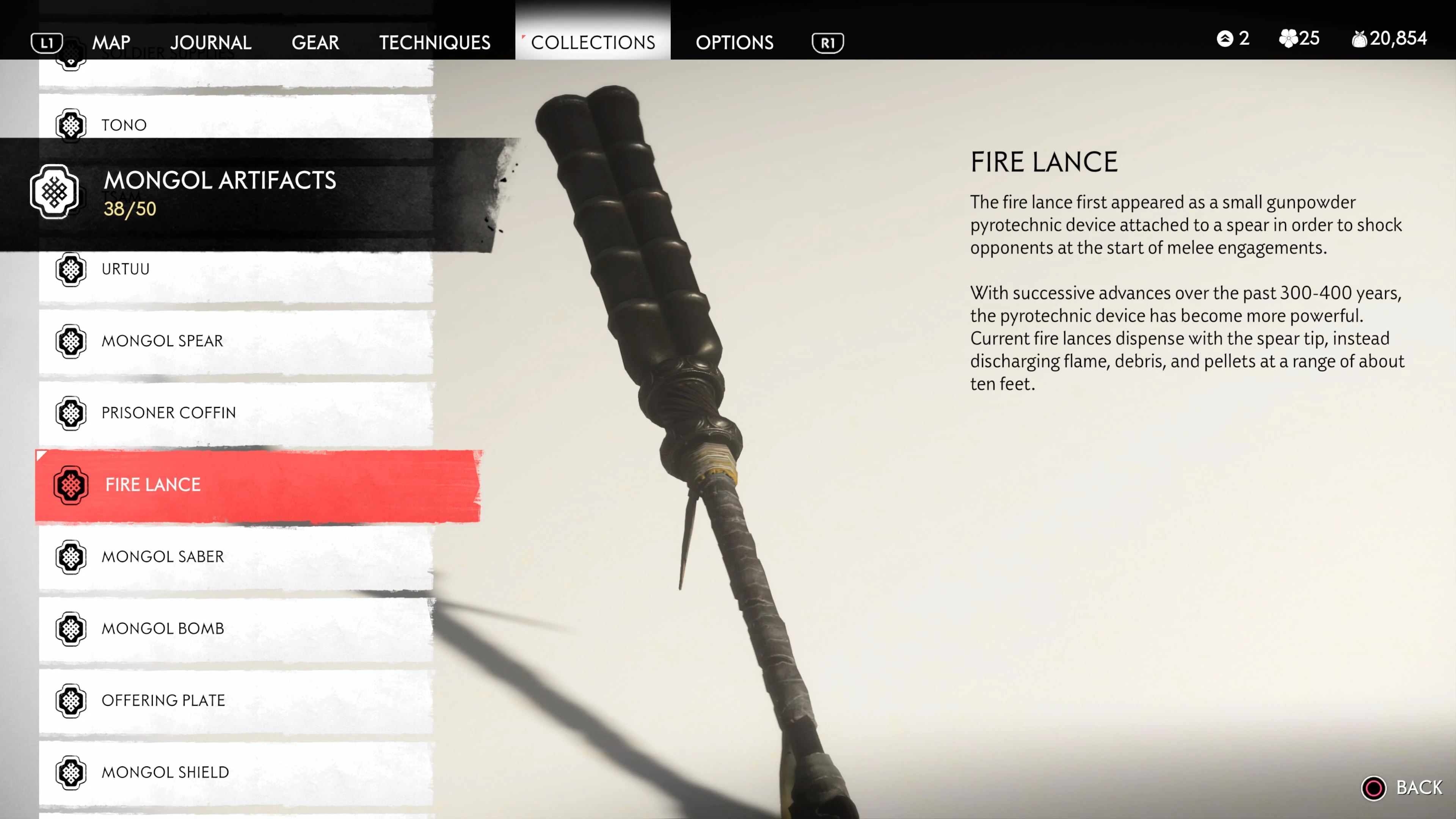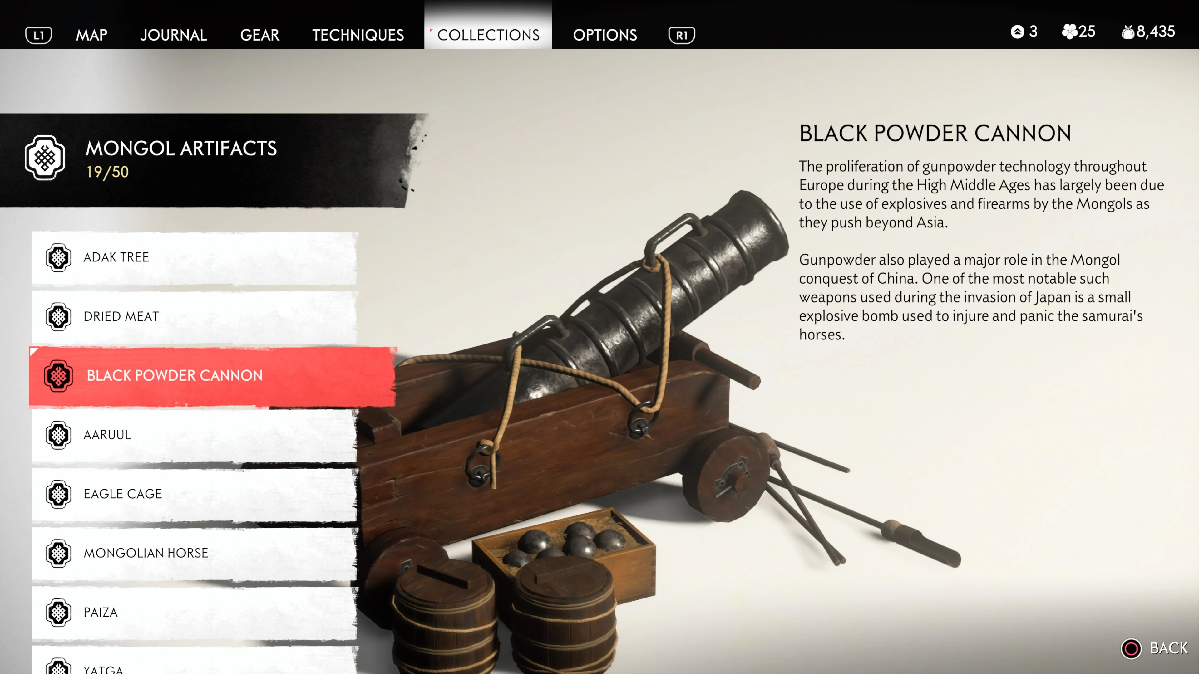 Mongol Artifacts are collectible items that are found throughout the island of Tsushima. They provide useful information on the Mongol Empire, including their way of life and approach to war. There are fifty (50) Mongol Artifacts in the game and collecting twenty (20) of them counts towards the "Know Your Enemy” trophy.