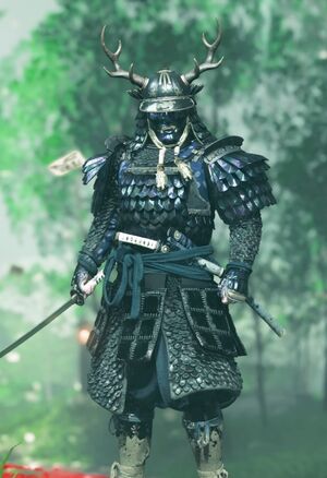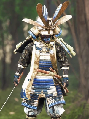 Heavy Oceanic Valor | Jin's Journey - Upgrade the Sakai Clan Armor to Level III and Purchase the dye from Baku the Voiceless in New Game+ |