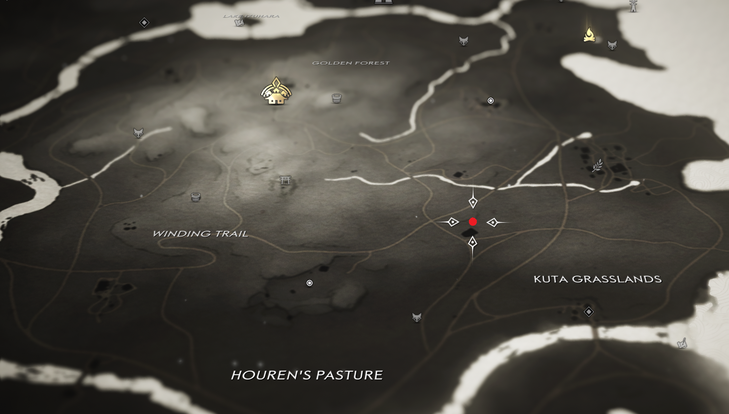 Jin Sakai approaches a house full of injured survivors. He speaks to one of them, who tells them that there is a merchant working with the Mongols. The Mongols gave the merchant an iron mark, which is what the survivors were trying to take from him. The survivor tells Jin that whoever carries the iron mark is free to travel the roads without fear of being stopped by the Mongols. Jin notes that he could find a use for it, leaving the survivor a bit shocked before telling Jin that he can have it, and the merchant's cart is up the road from the house.